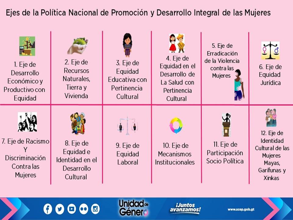 Ejes de la Política Nacional de Promoción y Desarrollo Integtral de las Mujeres.